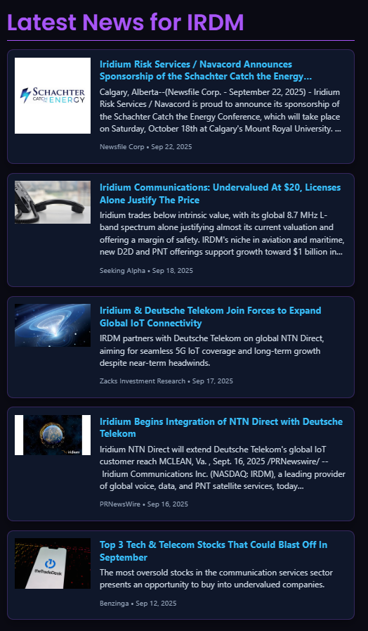 - Undervalued Thesis: Seeking Alpha highlights IRDM’s licenses alone justify its current valuation.