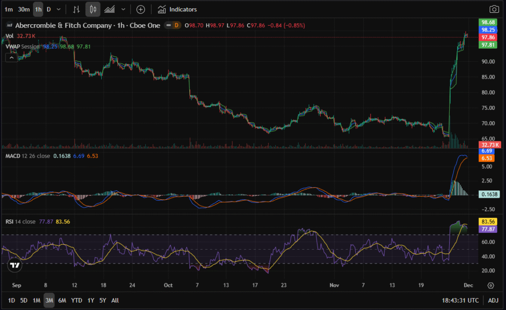 November 26, 2025 12:38 pmMorgan Stanley$95.00$90.24TheFly Abercrombie & Fitch price target raised to $95 from $78 at Morgan Stanley