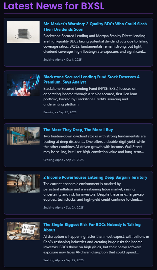 - Dividend risk — Analysts warn BXSL could face dividend pressure due to its high payout ratio.