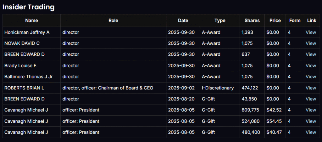 - Insiders: Mostly stock awards and gifts, not active buying.
