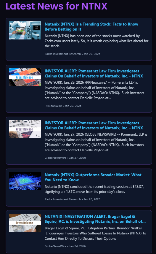 Nutanix (NTNX) has entered a critical phase where price, sentiment, and positioning have sharply diverged from underlying fundamentals. After a steep multi-month drawdown, NTNX is now trading near 3-month, 1-year, and multi-year lows, despite improving cash flow, strong margins, and a maturing subscription business model. This article consolidates technical analysis, fundamentals, news sentiment, analyst behavior, insider activity, and options flow, and concludes with a structured ITM LEAPS strategy designed for risk-aware long-term positioning.