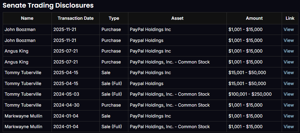 - Insider, Senate, and House trading context