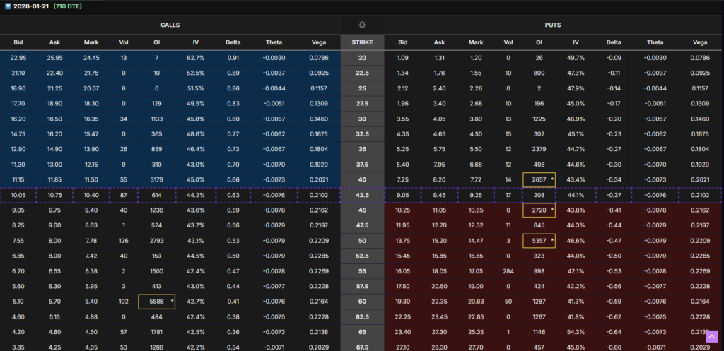 - Expiration: Jan 21, 2028 (~710 DTE)