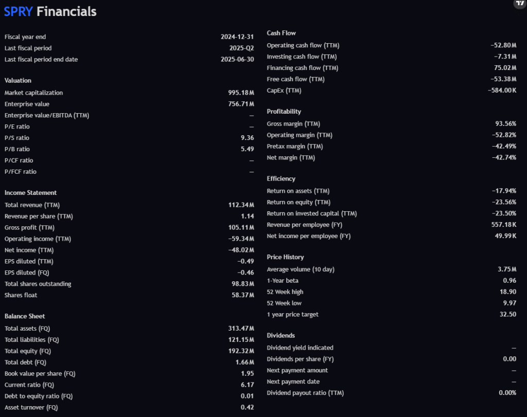 From a fundamentals standpoint, SPRY is a classic early-stage biotech story: