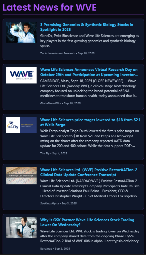 - Catalysts: WVE has a Virtual Research Day on Oct 29, 2025, likely boosting IV into the event. Ongoing AATD and obesity trials remain key.